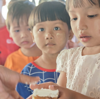 But the celebration didn’t end there. During lunch, we also celebrated the birthdays of all the children born in October with more cake, pizza for everyone, plenty of good food, and the exciting “shower candy.”
