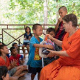 The little children rose early in eager anticipation with the chirping of the birds. The caregivers chose beautiful dresses for them which they reserved for this special occasion. The children were all bathed, happy and fresh as they walked to the pagoda at the top of the hill, the place we usually go for special occasions. When they reached the pagoda at 7am, the elders were waiting.
