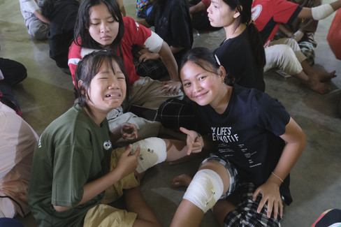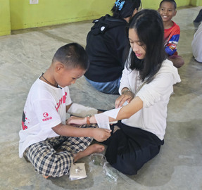 The medical students brought both knowledge and care to Baan Unrak. They conducted hands-on first aid seminars, teaching children how to clean wounds, apply antiseptic, and securely bandage injuries. These lessons instilled confidence in the children to handle small injuries.