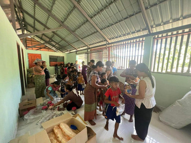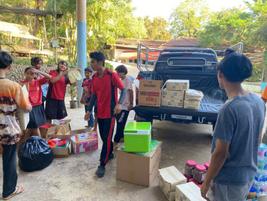 The children from Baan Unrak filled the trunk with essential items for the people in Myanmar.