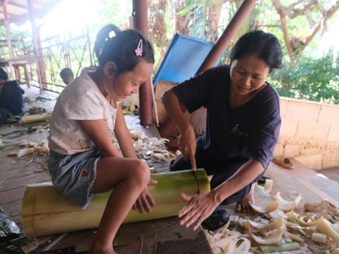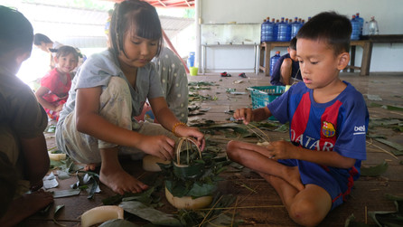 All ages are participate in the art of making krathongs, from the smallest of our children to the care-mothers.