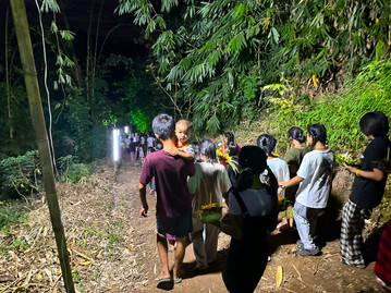 Accompanied by the radiant full moon, we walk in a solemn procession, carrying the krathongs and singing Baba Nam Kevalam (love is all).