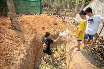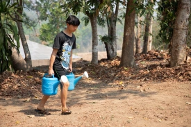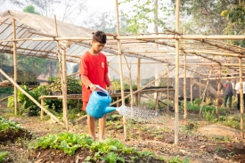 The boys take care of the garden guided by Pi Tarit, who grew up here at the Home and is now in charge of the teenagers. He is very knowledgeable about agriculture. Under his guidance, our organic garden is getting better and better day after day, bringing vegetables to the kitchen while also educating the children, and giving them purpose, and pride, in their work.