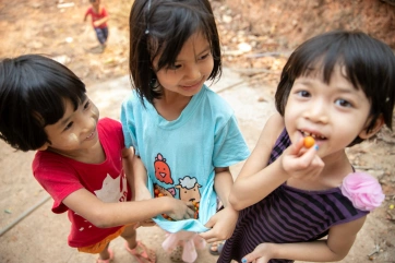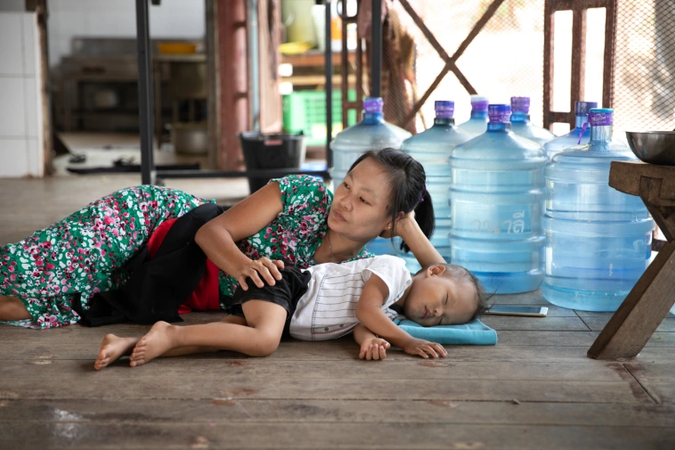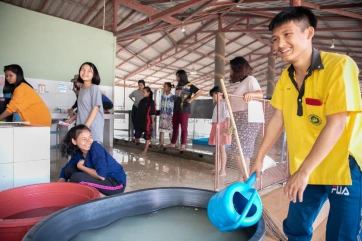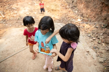 Big children love to take care and play with the little ones… like Janpen with baby Hom.