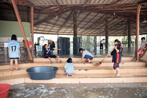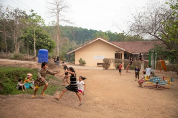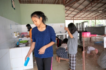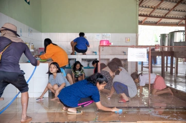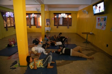 Ishvari is a special child, and she needs special care. Together with Pa Muno, her inseparable care giver, she goes to Bangkok once a year to do physiotherapy, learning exercises that she can do every day at the Home. Nandy, 10 years old, is her little helper.