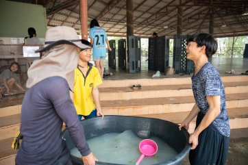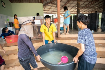 Following Didi’s teaching, the children learned to make goat cheese… with the milk of our beloved goats of Baan Unrak farm!