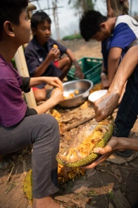 In the garden, there is always a reward for the hard workers. Today, it was delicious jackfruit freshly cut from a tree.