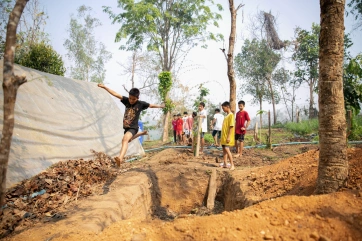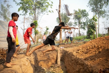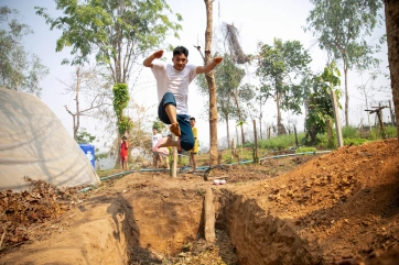 For the boys, the compost pit becomes a long jump challenge! And for those failing the jump across, it’s a free fall into food scraps…!