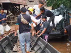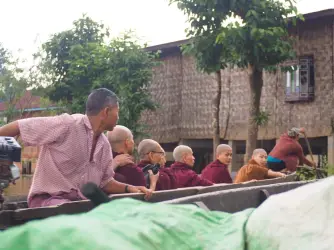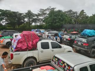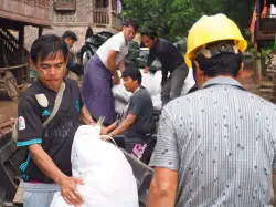 Ball and his friends, ex-children of Baan Unrak, were eager to help. Although they are Thai, they know that most of the people in the Sangkhlaburi area have Burmese ancestry. To honor them they wanted to help with the relief. It was very moving to see the huge response from Thailand to help fellow human beings in trouble. Trucks from all around the country congregated at the border to offer assistance. Some were unable to pass through security but the Baan Unrak team proceeded forward.