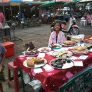 Our little sellers in the evening, assisted by volunteers, did a lot of good work. During the day they were able to play but by early afternoon they had to get ready to head to market. They worked on selling our baked goods to market goers during a very busy time in downtown Sangkhlaburi.