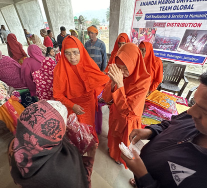 We had a chance to support the poor people of the neighborhood and joined the saree distribution organized by AMURT (Ananda Marga Universal Relief Team). The women expressed joy and gratitude upon receiving a new saree, highlighting the impact of this act of kindness.