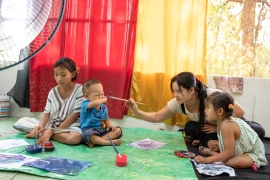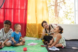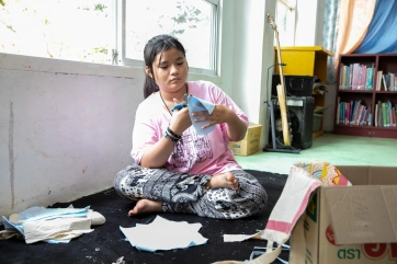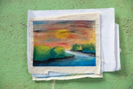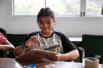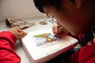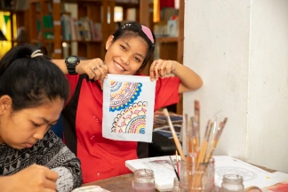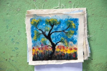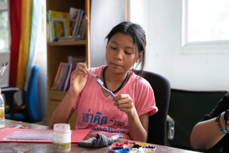 The paintings also decorate shopping bags that will be sold to support Baan Unrak Children’s Home.