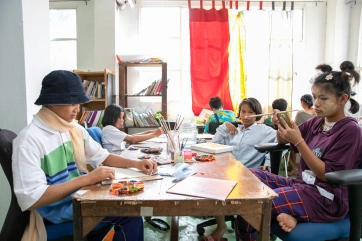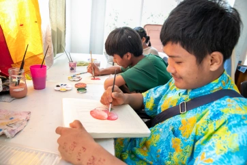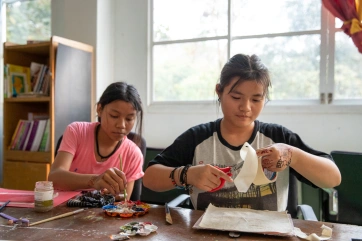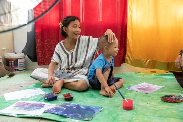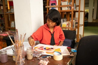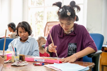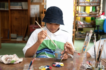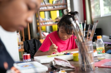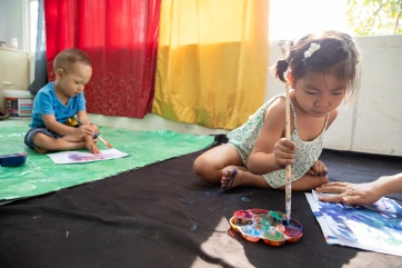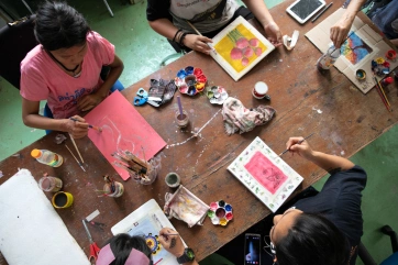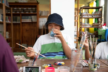 The afternoon painting workshop with Irene has become a daily unmissable appointment for a group of very passionate children.