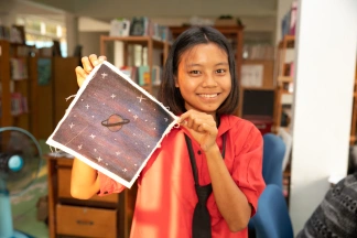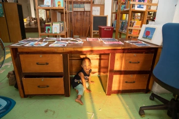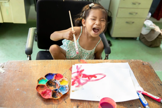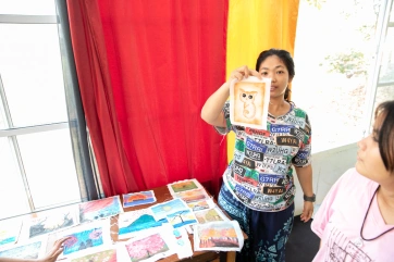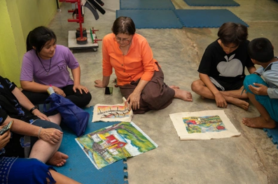 A sponsor came to visit Baan Unrak all the way from Australia. After the collective meditation, Didi showed her the paintings made by the children, and the sponsor immediately fell in love with one in particular, so much that she decided to buy it