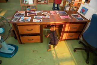 Em, the artist child, was called right away to come back to the meditation room. Here he confessed that, proud of his drawing, his intention was to give it as a present to Didi.