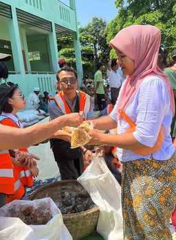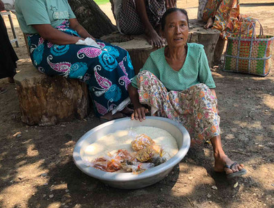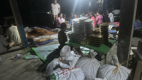 The kindness of the people of Mandalay shone through the rain. They redirected our team to Kyaukmee, 10 miles away. When the team arrived at 1 PM, there was no rest. They headed straight to the market, searching for the best ingredients to cook for hundreds.