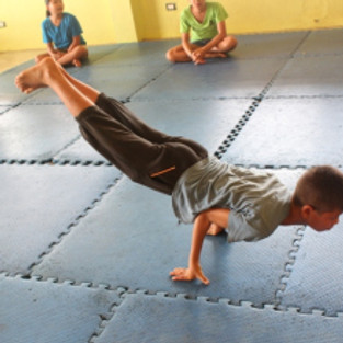 Our old yoga Acrobatic group is no longer but before dissolving some of the big children such as Aye Aye took the responsibility and duty to bring the knowledge to the younger children together with Latika. Unfortunately, now Latika hurt her foot. Aye Aye will teach the yoga positions. Latika will run the group by going to performances and make sure to keep a positive group spirit as she knows every yoga position.